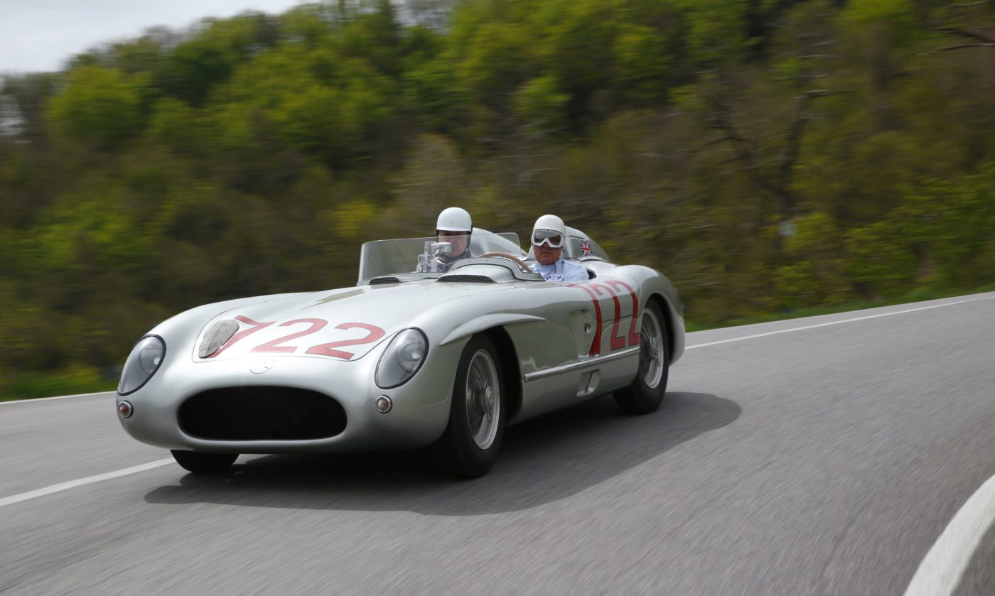 Moss’ first ever racing was done in a pre-war BMW 328 in March 1947. On his first time out, Stirling won, bringing home the Cullen Cup in a trials tournament. Moss drove his first professional race in 1948 when he was 18 in a Cooper 500 and during a career that spanned 14 years would go on to win 16 of the 66 F1 races in which he competed impressively across all categories of his 375 finishes, he won 212. In 1955 he was signed by Mercedes Benz to race in F1 alongside the great Juan Manuel Fangio, who beat him to the title. However that year he also delivered one of the most exceptional drives of his generation during the Mille Miglia, a punishing road race in Italy. Driving a Mercedes-Benz 300SLR he set a new record and beat Fangio by 32 minutes.